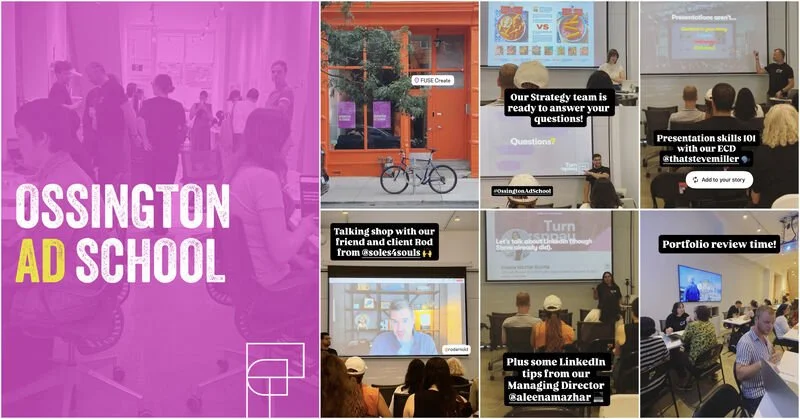 As a proudly independent agency, FUSE Create is committed to supporting emerging talent and helping young creatives hone their craft. We hosted a portfolio night for Art Directors and Copywriters designed to deliver honest, constructive feedback—without the unnecessary harshness. Or, as we put it, without being dicks about it.
